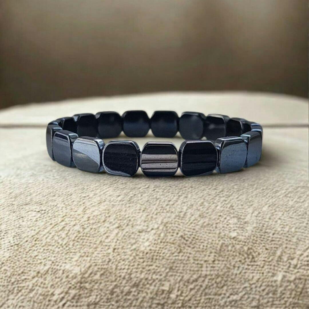 Modern zarafet ve sağlamlığı bir araya getiren Güç ve İhtişam Bilekliği, özenle seçilmiş kare kesim Hematit boncuklarla tasarlanmıştır. Bu özel tasarım, hem estetik bir çekicilik sunar hem de günlük kullanımınıza dayanıklılık katar. Zamansız bir parça olarak her anınıza eşlik eder.