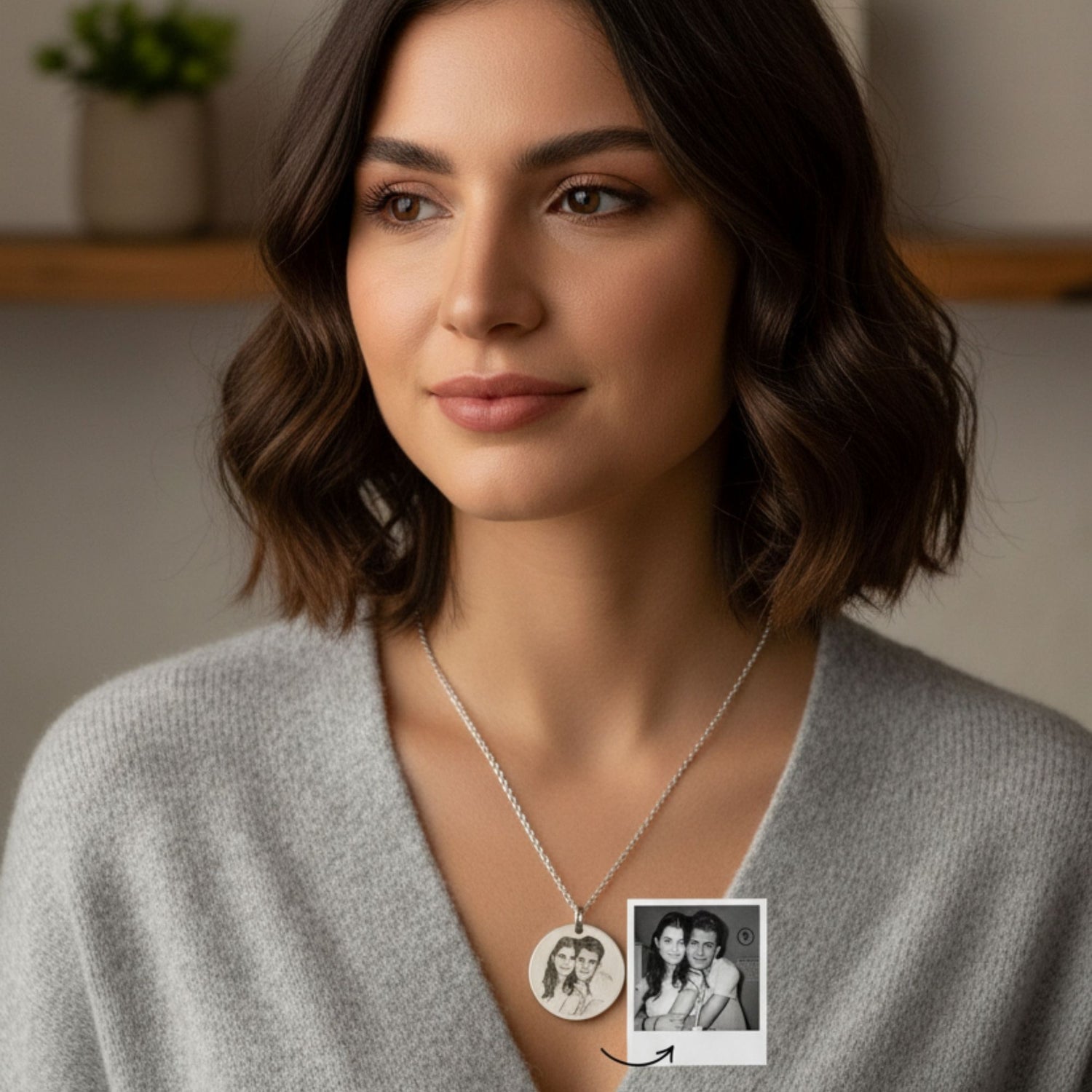 Fotoğraflardan daha da güzel! Erkek arkadaşımın yüzünü boynumda taşımak bana inanılmaz bir bağ hissi veriyor. Çok teşekkür ederim!