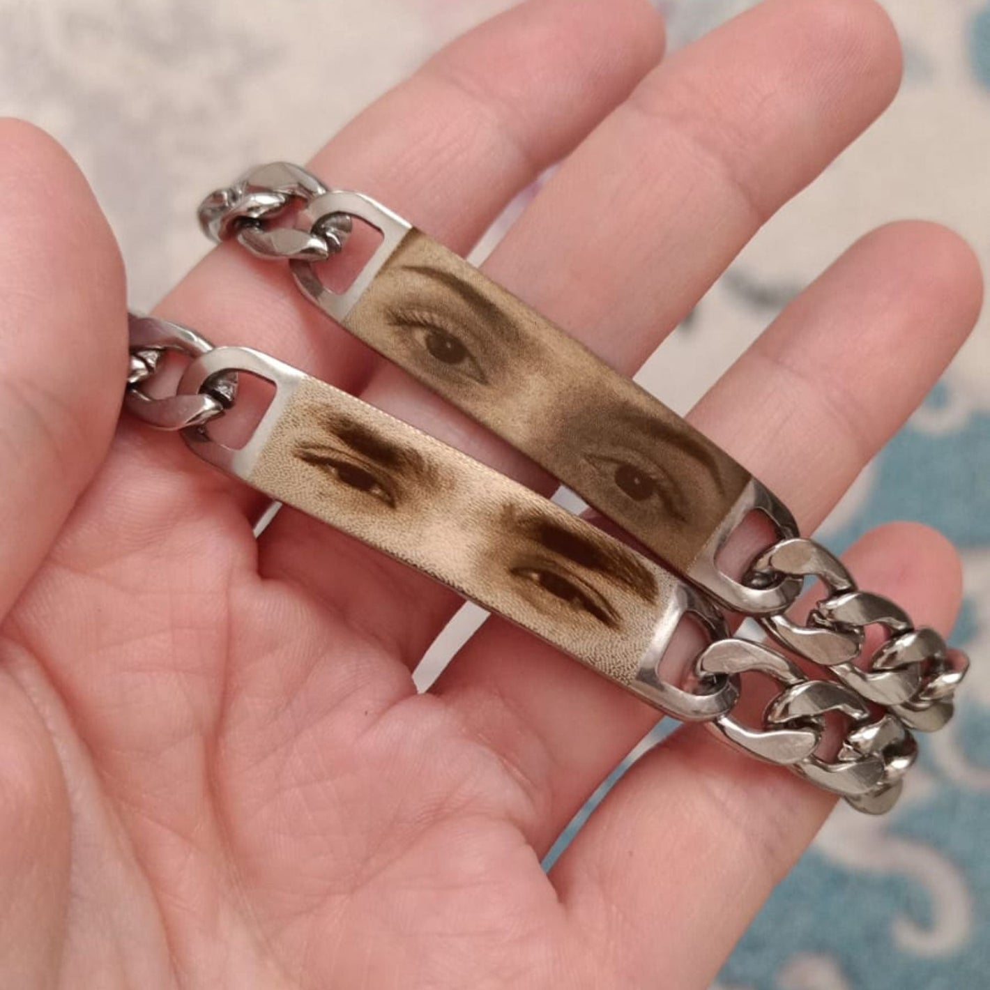Fotoğraflardan daha da güzel! Erkek arkadaşımın gözlerini bileğimde taşımak bana inanılmaz bir bağ hissi veriyor. Çok teşekkür ederim!